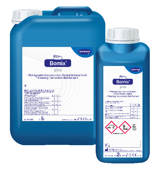 Bomix® plus is suitable for manual reprocessing of heat-sensitive and heat-resistant instruments in immersion baths and for the coarse and brush cleaning of endoscopes. One of the product’s strengths is the excellent cleaning power combined with disinfecting action. Bomix® plus is also suitable for flexible endoscopes heavily contaminated with protein.