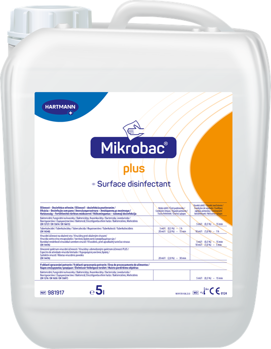 Mikrobac® plus is a QAC / amine-basedcleaning disinfectant concentrate for disinfection of surfaces of non-invasive medical devices.For a daily disinfecting cleaning of all water-resistant surfaces in all hygiene-relevant areas in health care. Due to its low-odour formulation, it is particularly suitable for use in areas close to patients or residents.