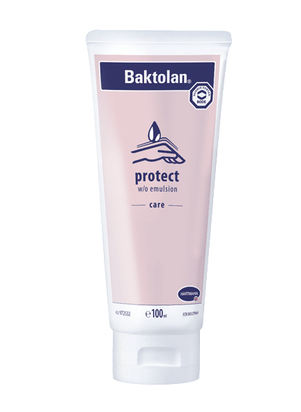 Baktolan® protect is specifically developed for the prophylactic protection against occupational skin damage and prior to contact with water-soluble substances such as solvents, alkalis or acids. It can be used as a supplement to protective gloves, before starting work, after breaks and as intensive care after work. Baktolan protect provides long-lasting moisture to dry skin and makes the skin feel smoother. The natural ingredient urea provides for a proven skin hydration.